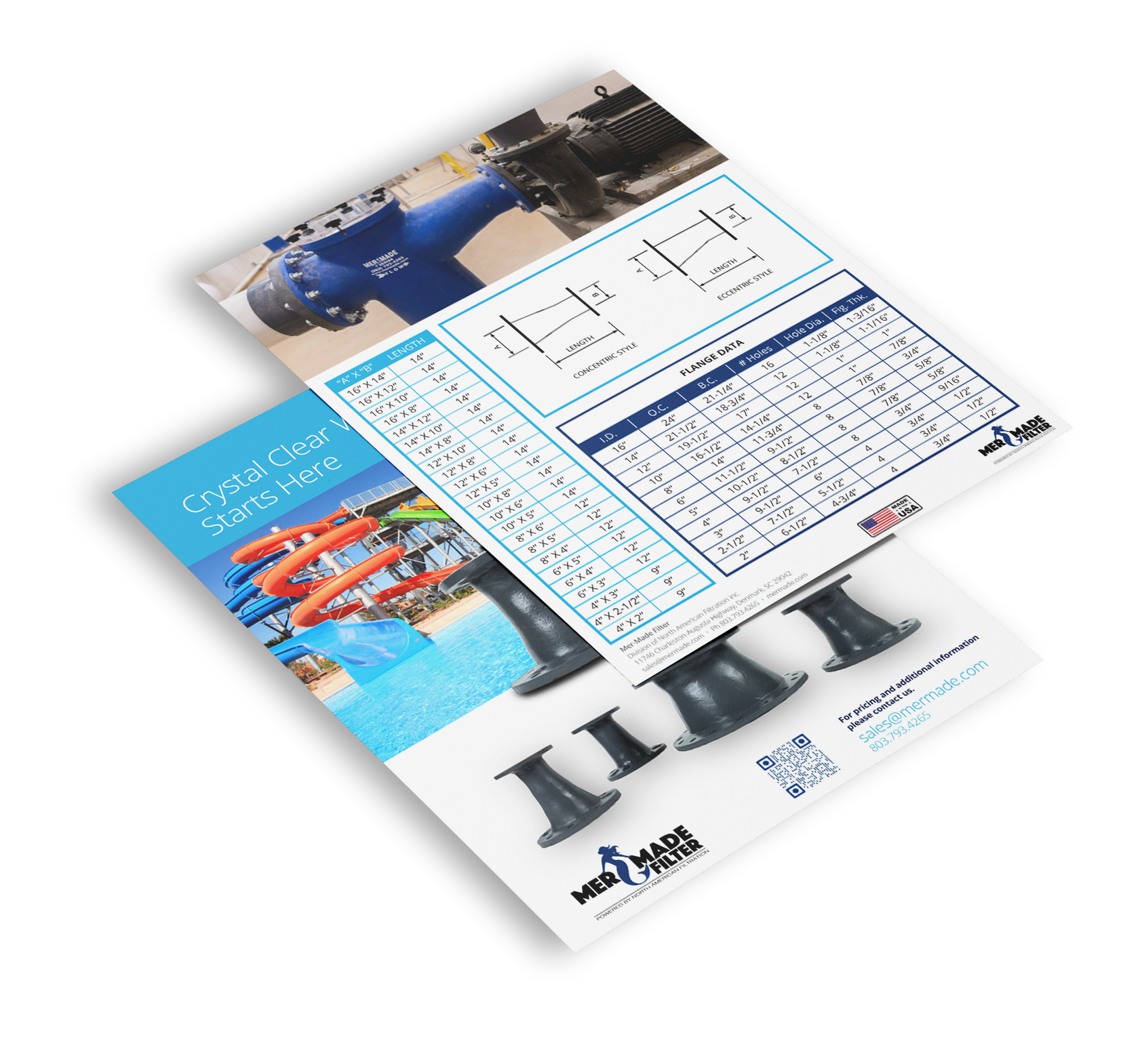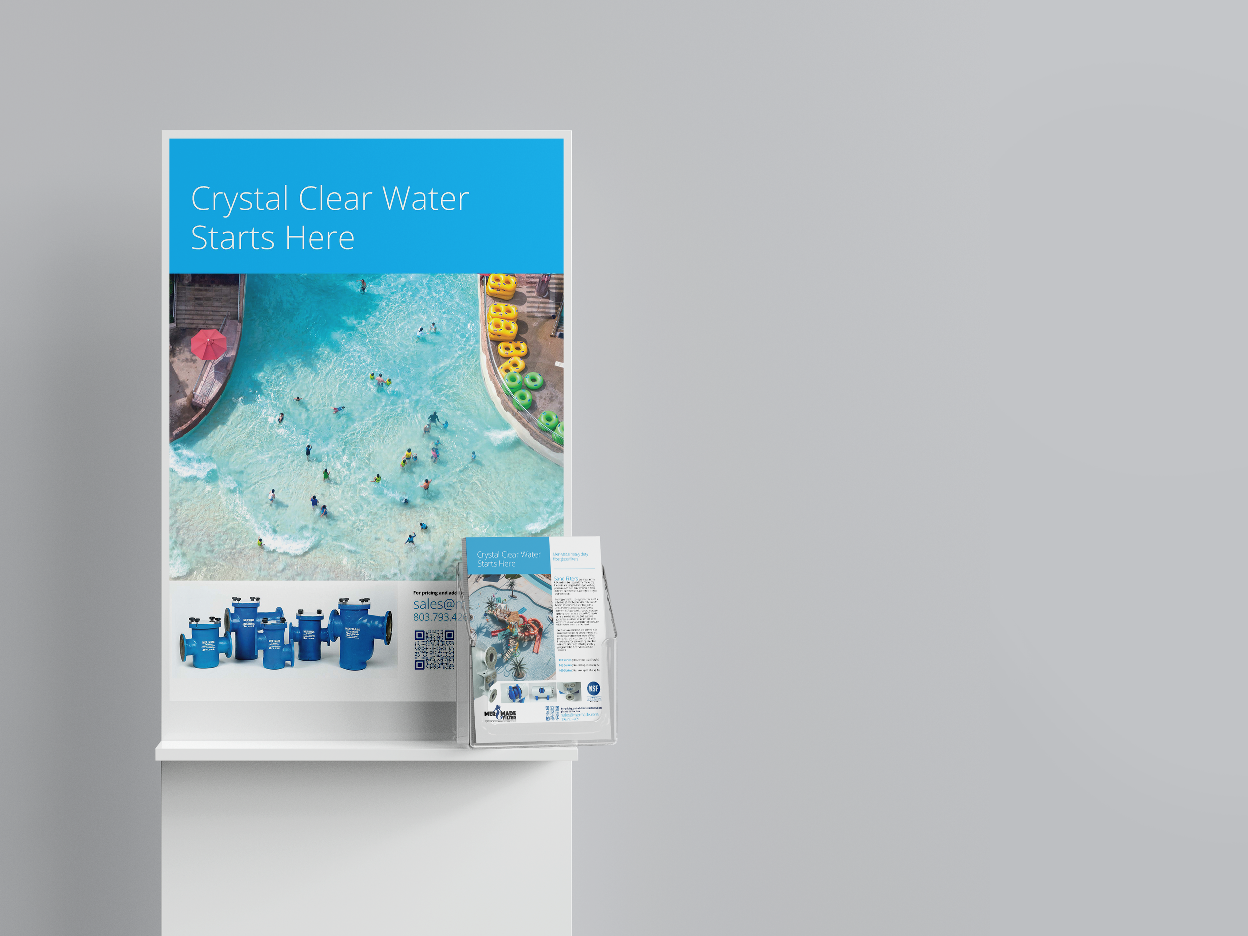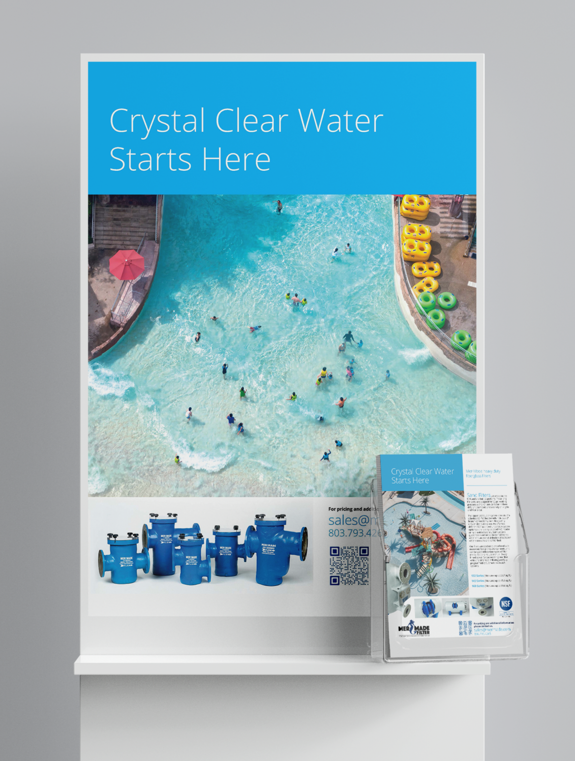 For Mer-Made, a leading manufacturer of commercial pool filtration systems, I created sales and trade show materials that made highly technical products feel clear, credible, and visually engaging. I designed product one-pagers, bi-fold brochures, and posters used in retail storefronts and industry events, translating specs and performance details into digestible, well-structured layouts. The result was a clean, modern collateral system that supported both in-person sales conversations and brand visibility on the trade show floor.